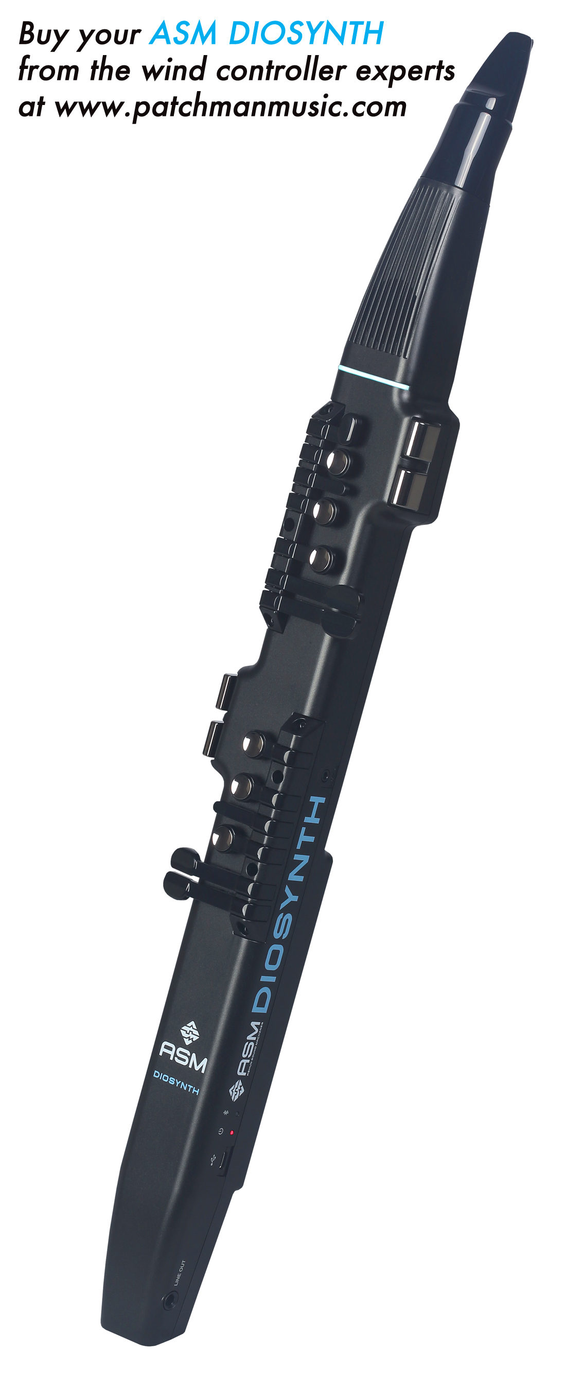 Buying your ASM DIOSYNTH from Patchman Music INCLUDES professional calibration, set-up, the latest firmware installed & tested, personalized service from wind controller Guru Matt Traum, & fast shipping/handling/insurance. You are also supporting a small business.